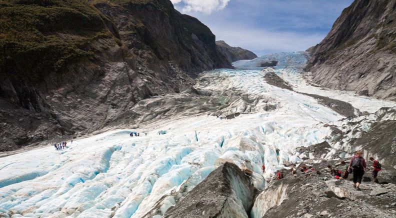 Today begins with a visit to the Hokitika Gorge, one of the West Coast’s most stunning spots. Shimmering turquoise waters wreathed with lush native bush make a sight to remember. Then it’s on to the Okarito Lagoon, alive with the calls of over 70 unique species of birds. Head out on a nature walk culminating in a lookout point from which, on a clear day, you can enjoy an unbeatable view over Westland (Tai Poutini) National Park from the snow-capped Southern Alps (Ka Tiritiri o te Moana) across extensive native forest to the lagoons and beaches of the coast. Continue your journey south to the Fox Glacier township, your gateway to the dramatic and enormous Fox Glacier and your base for the evening.