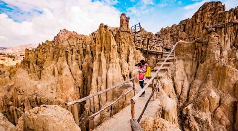 Today we head out to explore this captivating city on a guided tour. Starting with a tremendous perspective of the city at the Killi Killi viewpoint, we make our way to Murillo Square, the main square in La Paz and home to the Presidential Palace, the National Congress of Bolivia and the Cathedral of La Paz. Be sure to look out for the clock on the Bolivian congress building, which in 2014 was changed by the Bolivian government to turn anti-clockwise. The government at the time said it was to help Bolivians to treasure their heritage, question established norms and think creatively! Our exploration continues as we descend into the mesmerising Moon Valley, this rocky landscape which has been created by centuries of weathering is quite an incredible sight. Next we take a ride in a cable car across the city, giving an impressive panorama of the city. Then we visit the famous witches market, where many mystical objects of Andean rituals and sorcery are on sale, from dried frogs to llama foetuses for Aymara rituals. Before our tour ends we visit the beautiful San Francisco church with it's exquisite carvings on the facade, it is one of the largest colonial architectural complexes found in Latin America.