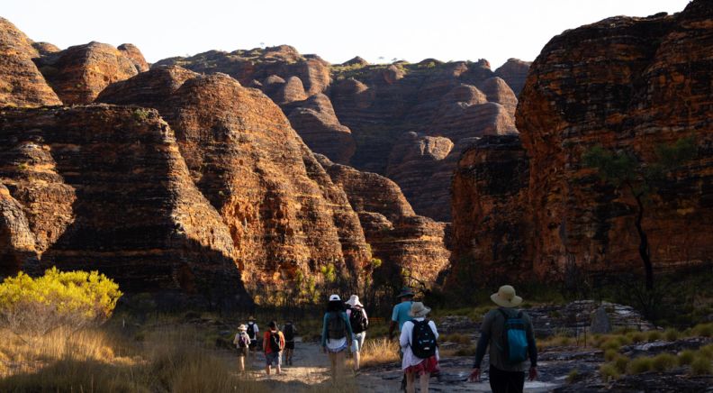 This morning, travel to Purnululu National Park (or better known as the Bungle Bungles). On the way, stop at the China Wall near Halls Creek – a natural white limestone wall which looks like a miniature Great Wall of China. Then, continue to Purnululu National Park. When you arrive, take some time to settle into your private permanent tented camp and take in the views of the Bungles Massif and the Kimberley night sky from your door.
