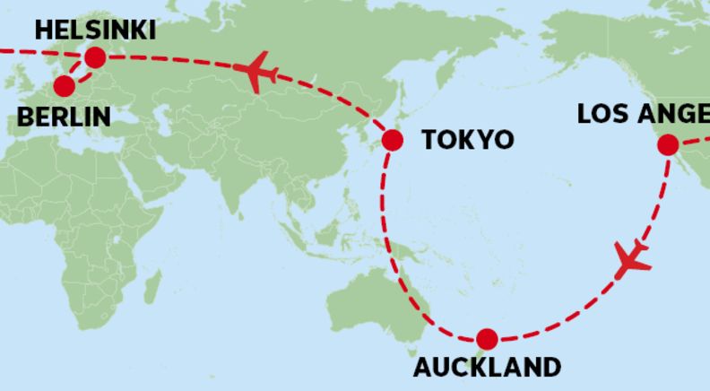 Round the World Economy Class airfare stopping in Tokyo, Helsinki, Berlin & Los Angeles