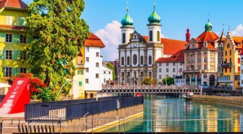 View the Chapel Bridge in Lucerne and the Eiffel Tower and Notre Dame Cathedral in Paris