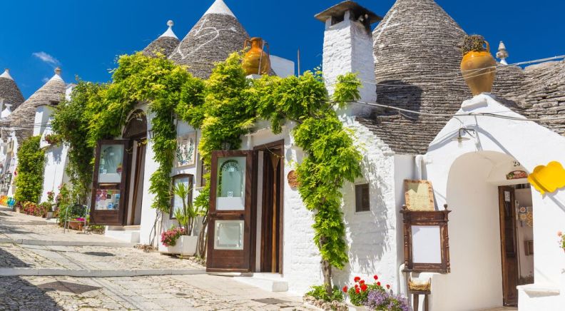 Travel by private transport to a local masseria to meet an olive oil producer, who will show you how the techniques have changed over the millennia before you're treated to a tasting. Some olive trees here are thought to be close to 3000 years old and the farm has been active since Roman times. You’ll then head to Ostuni and explore its narrow streets before continuing to Alberobello. Travellers flock here to see at the beehive-shaped Trulli (singular trullo) – small, dry-stone houses built from local limestone in the 14th century. The origins of the buildings are unclear, although it's possible the mortar-less dwellings were created to be easily dismantled in a feudal tax evasion scheme. Wander the Old Town quarter of Rione Monti, where thousands of Trulli (and souvenir shops) rise over the hill or head over to Rione Aia Piccola and see Trulli family dwellings.