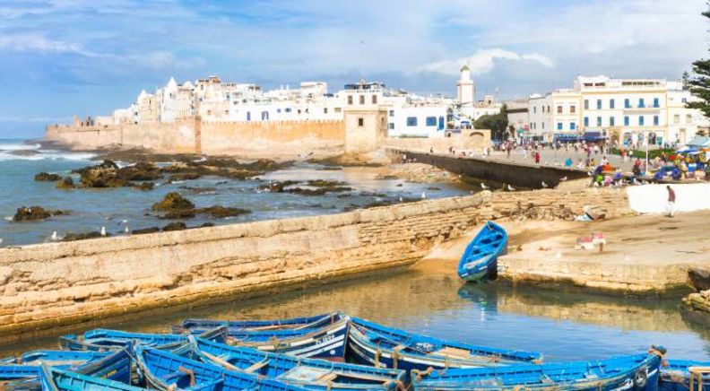 Essaouira - Casablanca. Spend the next three days exploring the sights and delights of Essaouira at your own pace. Set on the rugged shores of the breezy Atlantic Coast, this charming seaside city offers a welcome respite from the hustle and bustle of Marrakech. While away the days here exploring its winding streets lined with whitewash houses, picking your way through the shops in its ancient medina, or by sitting at an ocean-facing restaurant sipping on a cup of coffee. During the warmer months why not try some water sports too, as the windy shores here offer ideal conditions for wind and kite surfing. On the evening of day 6 a private transfer will take you back to Casablanca for the night.